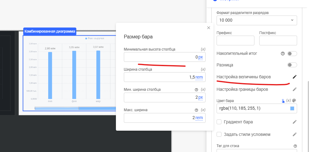 Если попробовать задать ограничение оси, то нужные столбцы не будут отображаться.
