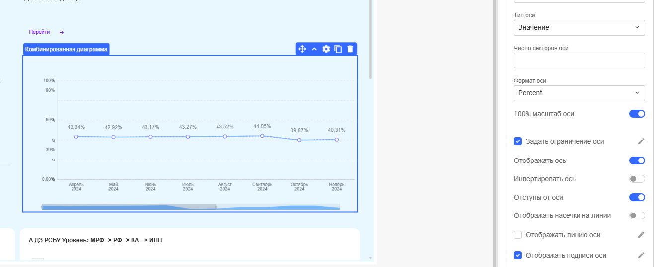 Например: при задании ограничения данные за апрель будут показываться как 94% 0% 0% 0%, а 5,8% выходит за пределы графика.