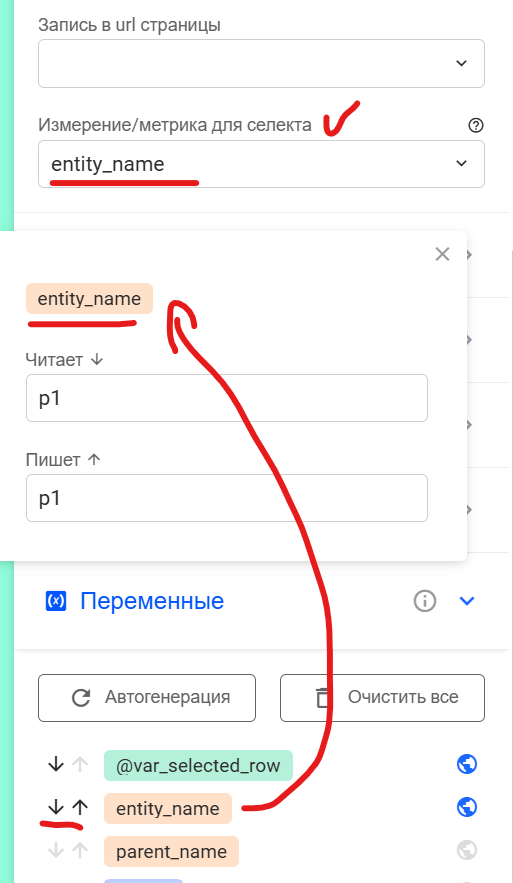 После этого в настройках Таблицы 2 нужно поставить динамическую переменную на чтение той же самой переменной, что и в измерении (у вас это Регион, картинка 5).